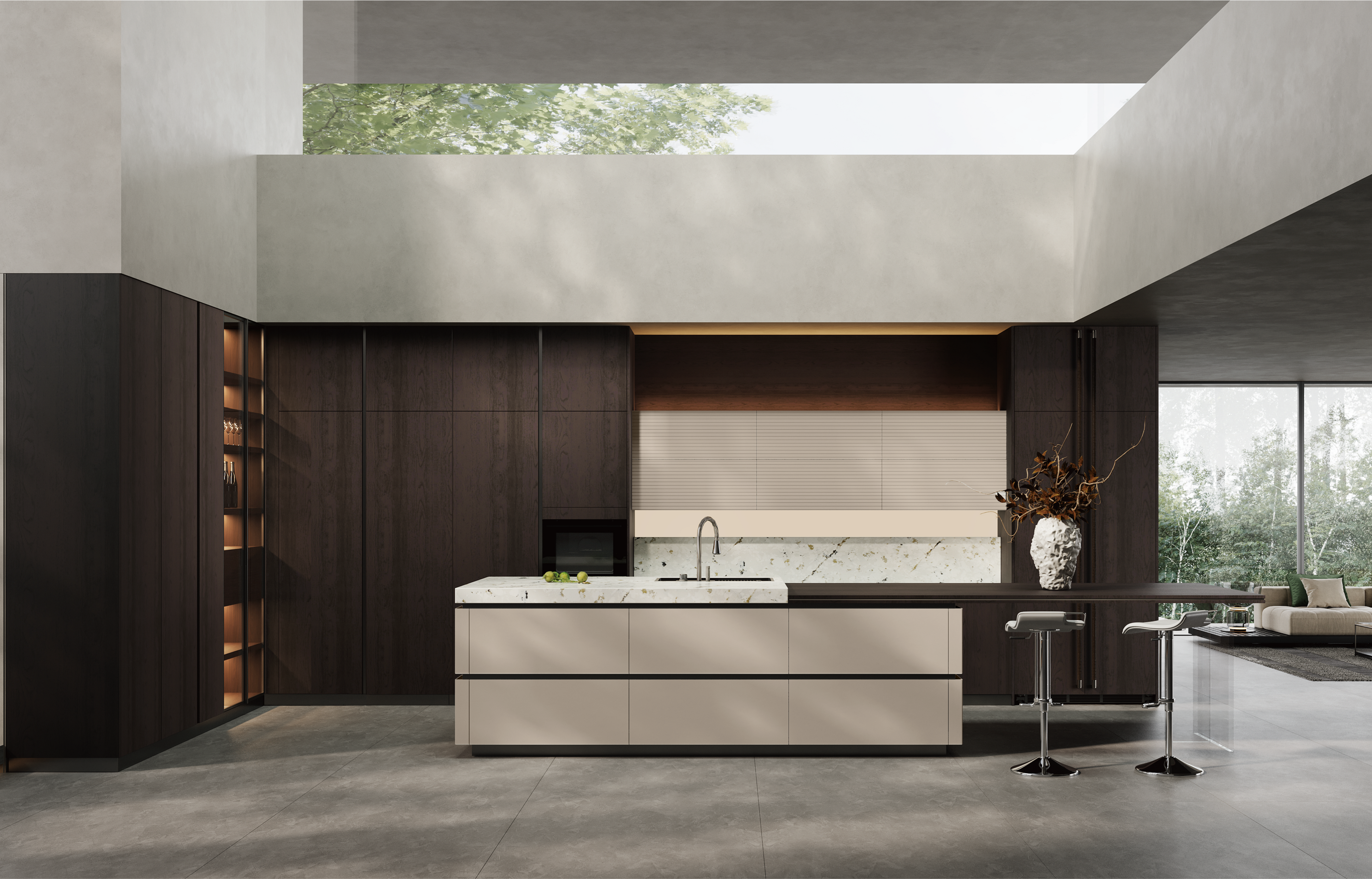 通过PA视讯厨柜量体裁柜,定制出适合主厨下厨的烹饪区和洗涤区的舒适高度。